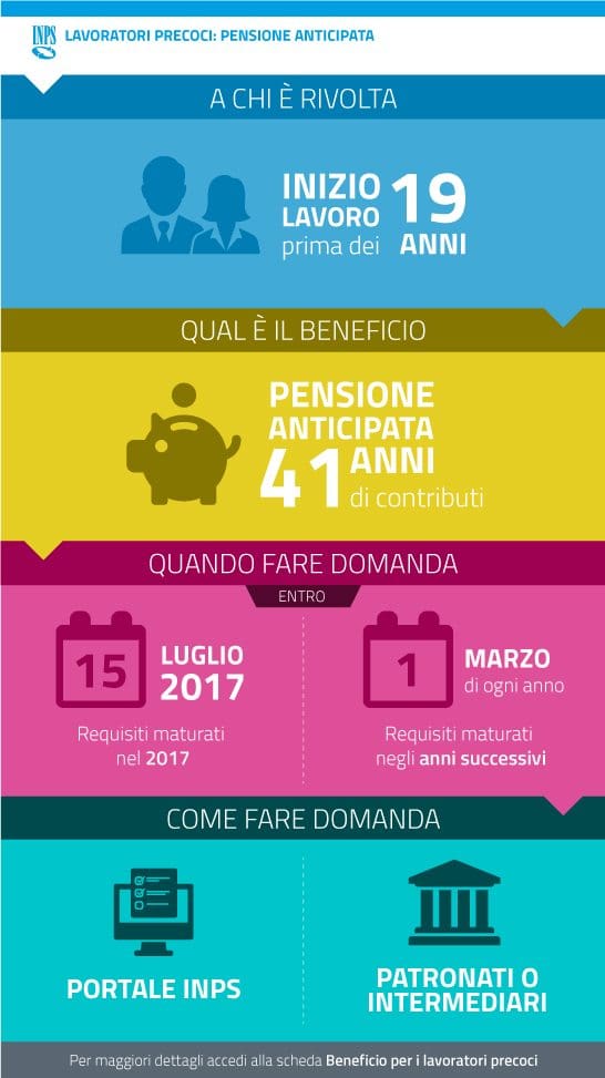 Tali lavoratori possono accedere alla pensione anticipata con un requisito contributivo ridotto a 41 anni.